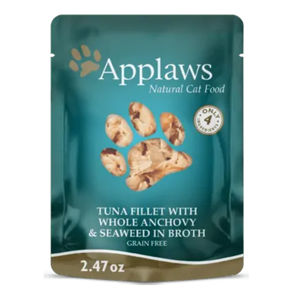 Applaws Broth Pouches are great for your pets nutrition. Applaws Tuna Fillet with whole Anchovy and Seaweed in Broth Pouch contains nothing more than the ingredients listed and is a natural complementary pet food for adult cats.