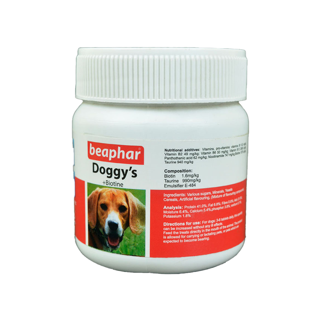 Doggy’s heart treats with biotine contain a lot of B-vitamin extract from yeast, vitamin C, E and a multi-mineral complex. The perfect reward for your dog.
