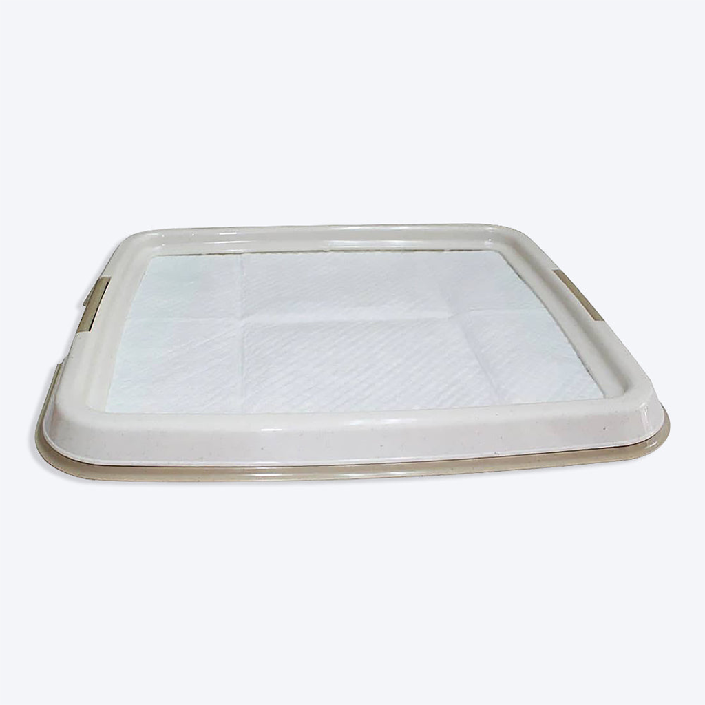 A steadfast frame holds puppy training pads securely and the rubber feet fixed to the bottom keep it from slipping. The frame will support training pads even if they are soaked through.